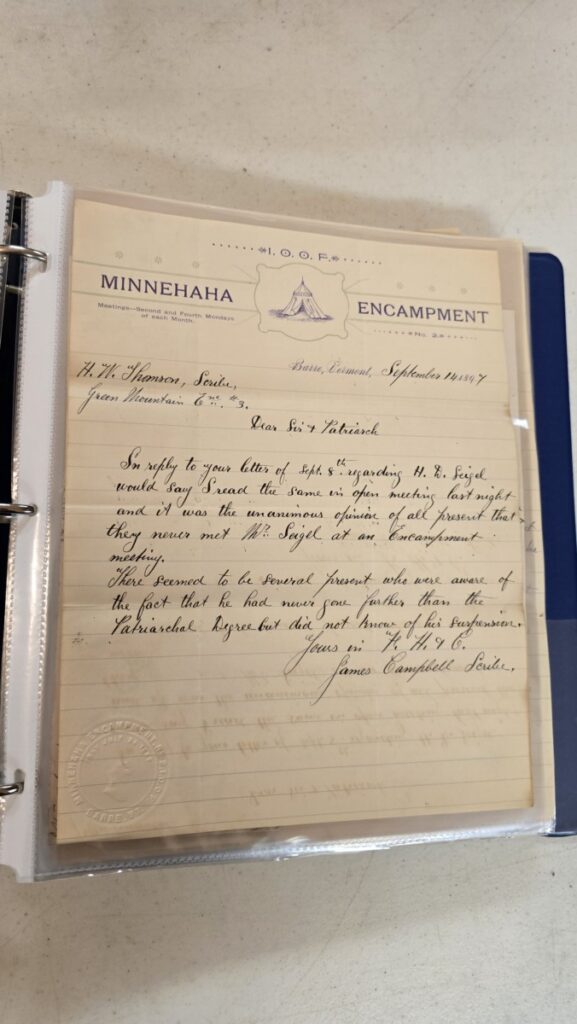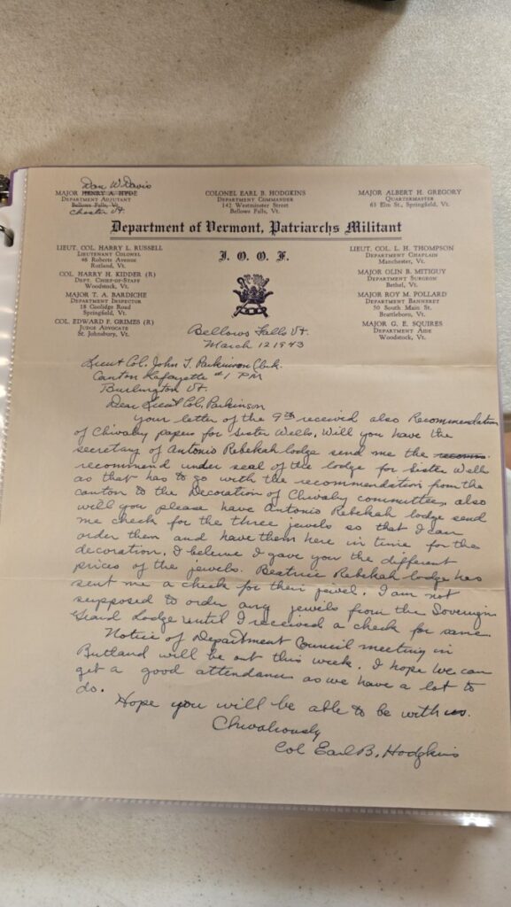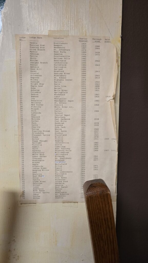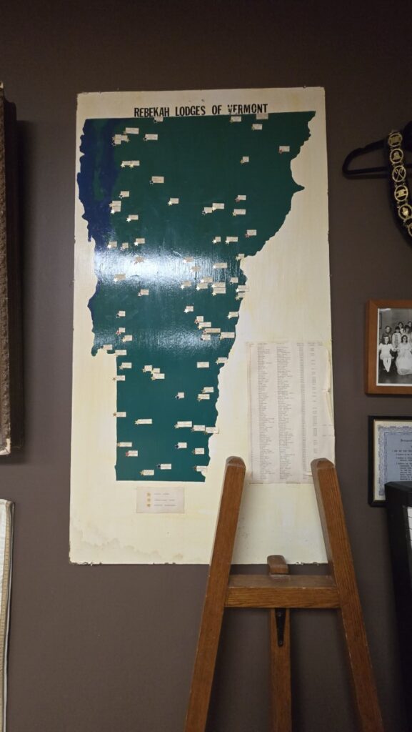 Zachary: I’m pointing off to the big map we have of the state of Vermont with Rebecca lodges of all across it, dozens of stars. So those were separate from the Odd Fellows lodges.