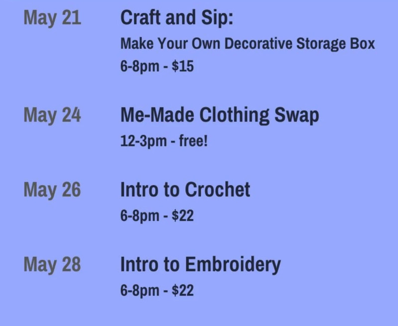 Jessica: So like we have people that come in who are learning a new craft who have maybe just knit and then they take Ariana’s crochet class because they want to delve into that and see if they like it or they take one of my sewing classes. And so we have been able to foster a really nice sense of community, which I think is important for both Ariana and I through like we have a monthly bring your own craft night that is the first Thursday of every month and folks come and then we have regulars that come and bring whatever they’re working on and we get to see their projects that they’re working on and I love that’s I love asking people like what are you going to do? And it’s funny because sometimes people will be like I just bought it because I liked it and they’re like embarrassed to say that. And I’m like, do you know how many times I bought fabric because I like it?